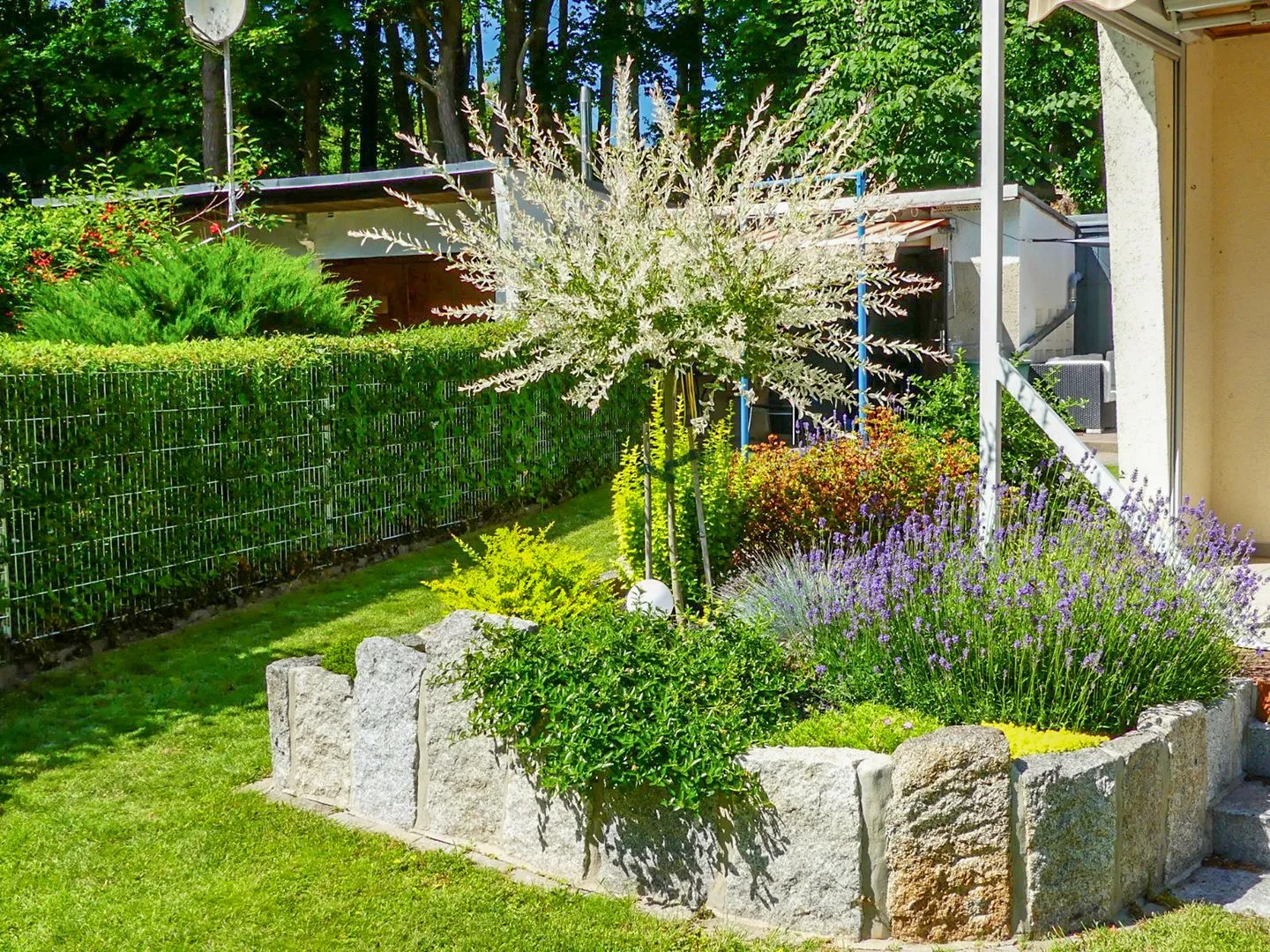 Der Tag beginnt entspannt auf der sonnigen Terrasse zur Seeseite (ca. 20 m²). Eine elektrische Markise sorgt bei Bedarf für Schatten, und am Abend wird der Holzkohlegrill schnell zum Lieblingsplatz. Ein besonderes Plus ist der Zugang zum Privatsteg – perfekt, um die Ruhe am See in vollen Zügen zu genießen.