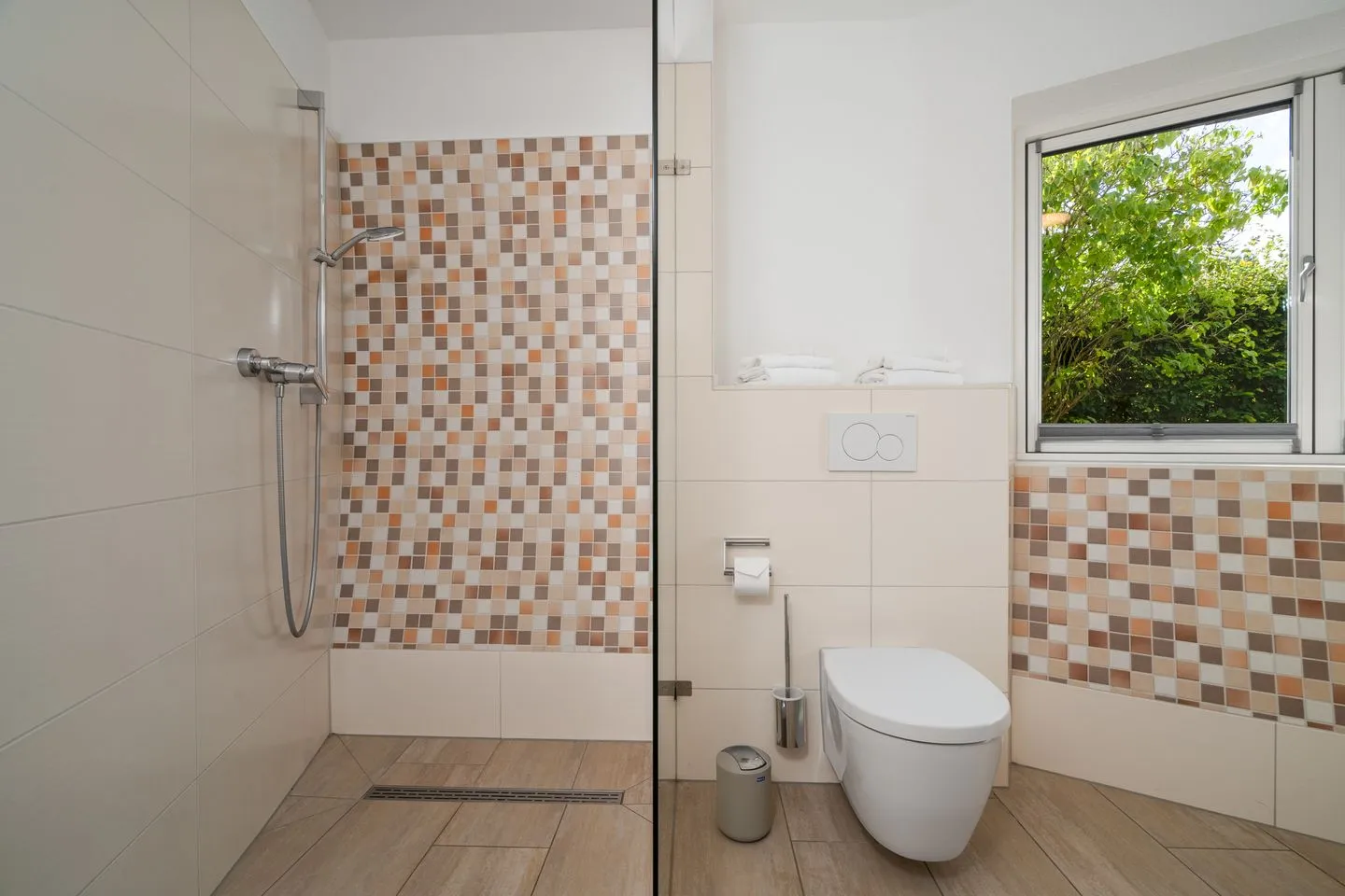 Auf ca. 85,5 m² öffnet sich im Erdgeschoss ein fließender Wohn-/Ess- und Kochbereich – der ideale Ort für gemeinsame Stunden. Das Kaminfeuer begleitet Gespräche und Spielrunden, während in der vollständig ausgestatteten Küche (Cerankochfeld, Backofen, Geschirrspüler, Kühl-/Gefrierfach, Kaffeemaschine & Espressokocher, Wasserkocher, Toaster, Mixer) regionale Zutaten ihren Auftritt bekommen. Das Bad im EG bietet eine Walk-in-Dusche und die Sauna – perfekt nach aktiven Tagen am Wasser. Im Obergeschoss erwarten Sie zwei Schlafzimmer mit bequemen Doppelbetten; das Gästebad (WC/Waschbecken) sorgt für Extra-Komfort. Unter der Lichtkuppel lädt die Empore zum Lesen, Träumen oder Sterne zählen ein.