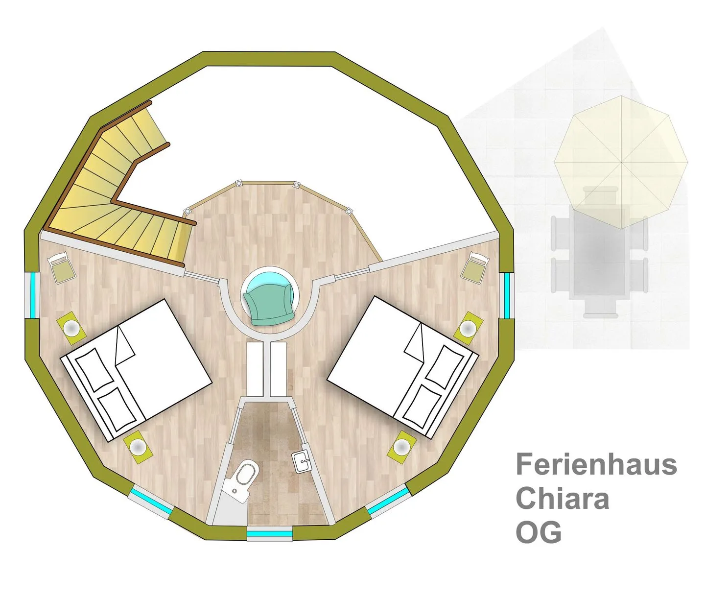 Wenn Architektur zur Umarmung wird: Chiara empfängt Sie mit runden Linien, warmem Holzduft und sanftem Licht unter der Kuppel. Außen schimmern Lärchenschindeln, innen sorgen Lehmputz, Seegrasdämmung und Eichenholzboden für ein ruhiges, ausgewogenes Innenklima – ein Haus, das atmet und zur Entschleunigung einlädt.