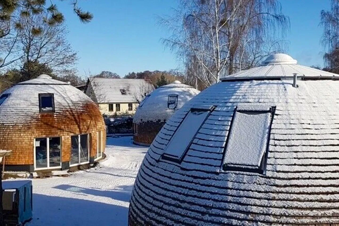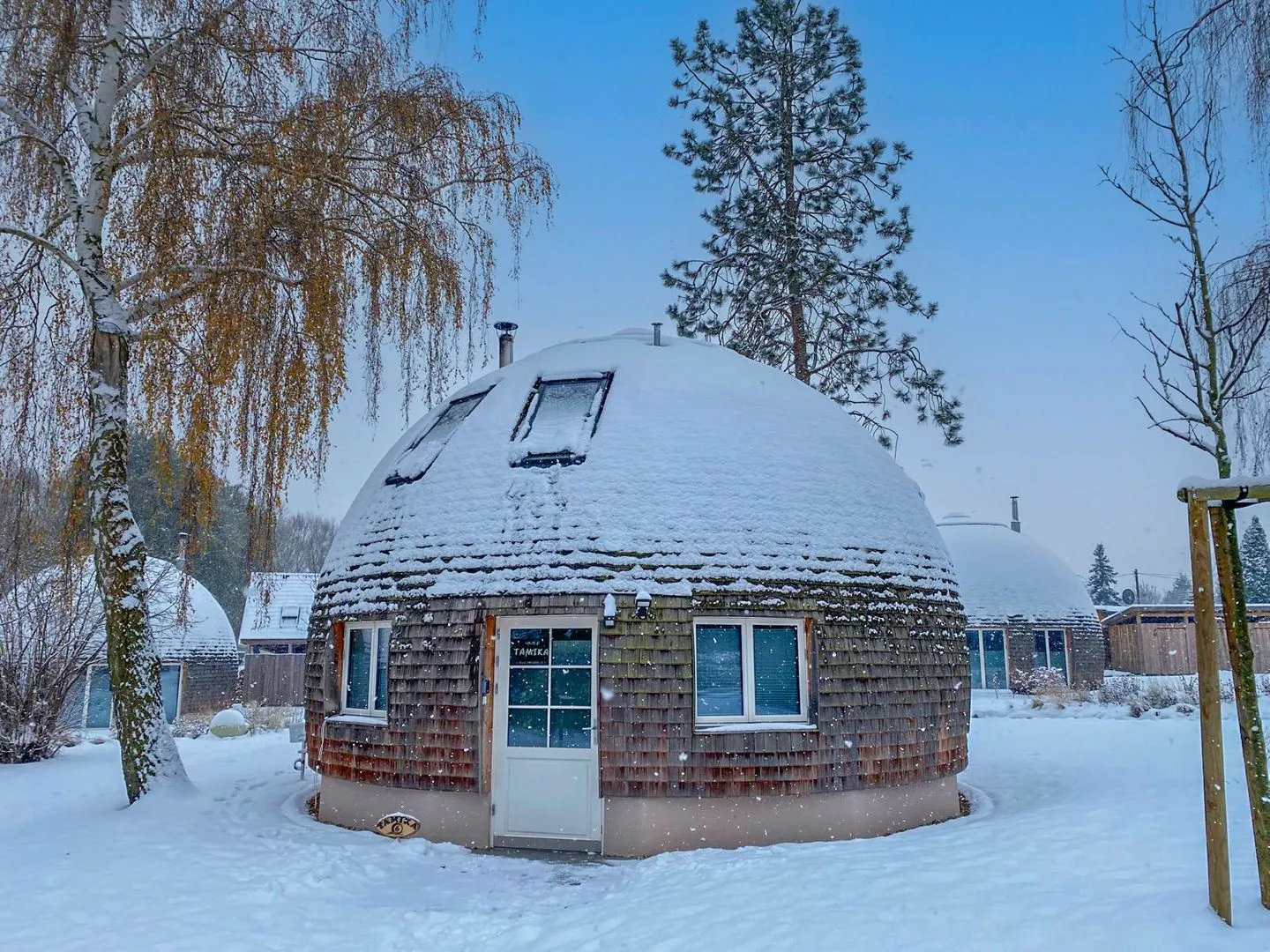 Tamika ist ein natürlich konzipiertes Kugelhaus (ca. 68,5 m²) für bis zu vier Personen – mit Lichtkuppel, bodentiefen Fenstern, Lärchenschindeln außen sowie Lehmputz, Seegrasdämmung und Eichenholzboden innen. Viel Tageslicht, sanfte Materialien und klare Linien erzeugen ein wohltuendes Raumklima.