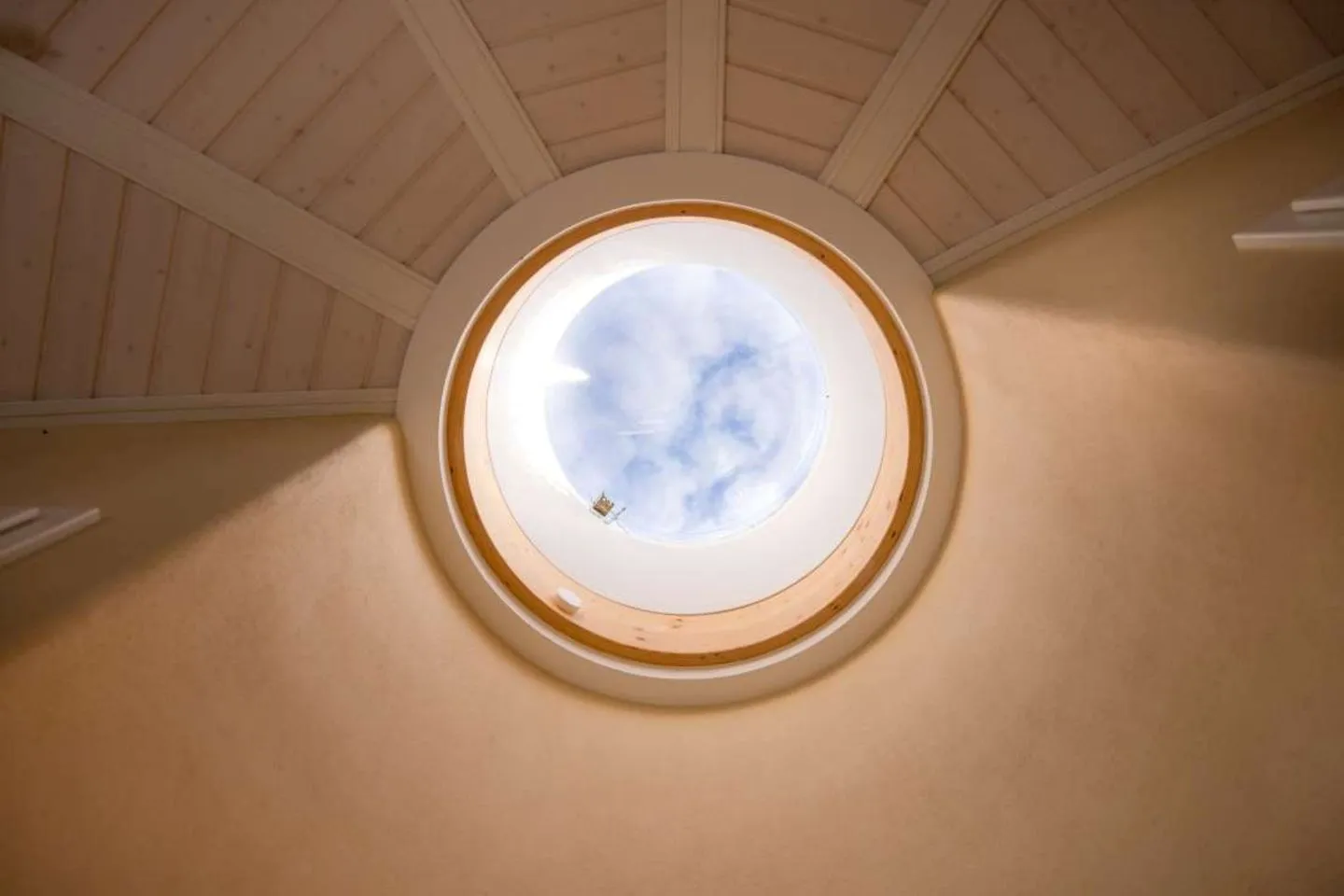 Wenn Architektur zur Umarmung wird: Chiara empfängt Sie mit runden Linien, warmem Holzduft und sanftem Licht unter der Kuppel. Außen schimmern Lärchenschindeln, innen sorgen Lehmputz, Seegrasdämmung und Eichenholzboden für ein ruhiges, ausgewogenes Innenklima – ein Haus, das atmet und zur Entschleunigung einlädt.