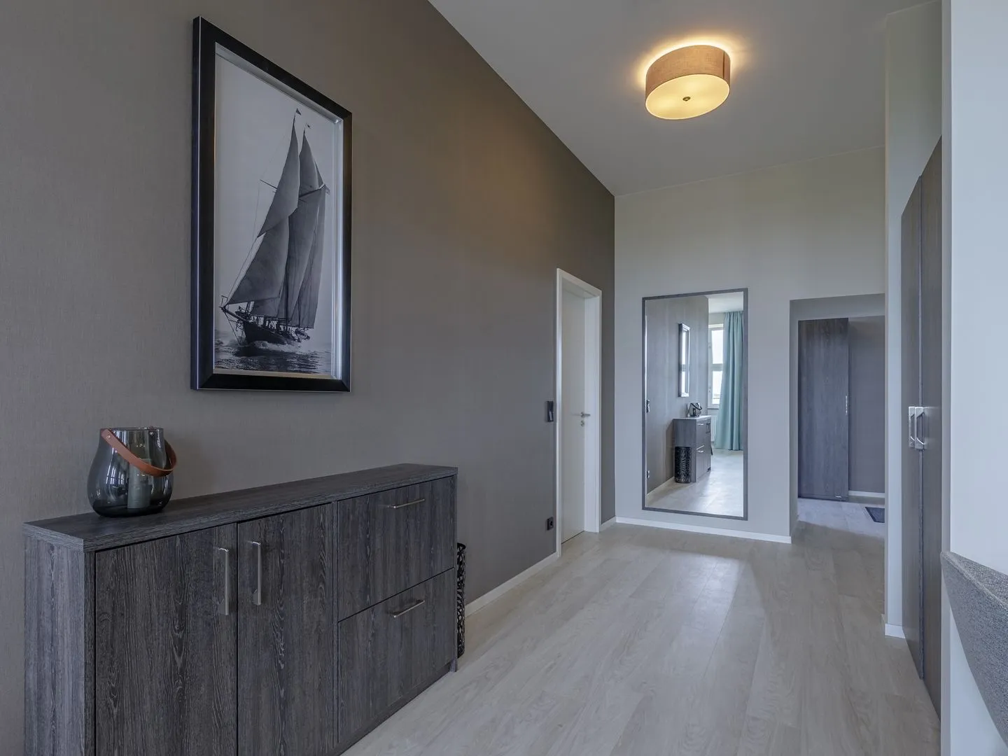 Die Ferienwohnung „Panorama-Utkiek“ in der Anlage Zwei Wasser – Alte Seefahrtschule Wustrow bietet Platz für 2–4 Personen und ist auch für Urlaub mit Hund geeignet. Freuen Sie sich auf einen lichtdurchfluteten Wohnbereich, NOLTE-Küche, Schlafzimmer mit En-Suite-Bad, Waschtrockner sowie WLAN. Highlight: eigener Strandkorb am Ostseestrand (April–Oktober) und Wellness-/Fitnessbereich im Haupthaus. Ideal fürs Arbeiten: höhenverstellbarer Schreibtisch, Bürostuhl, Bildschirm, Lampe, Tastatur und Maus.