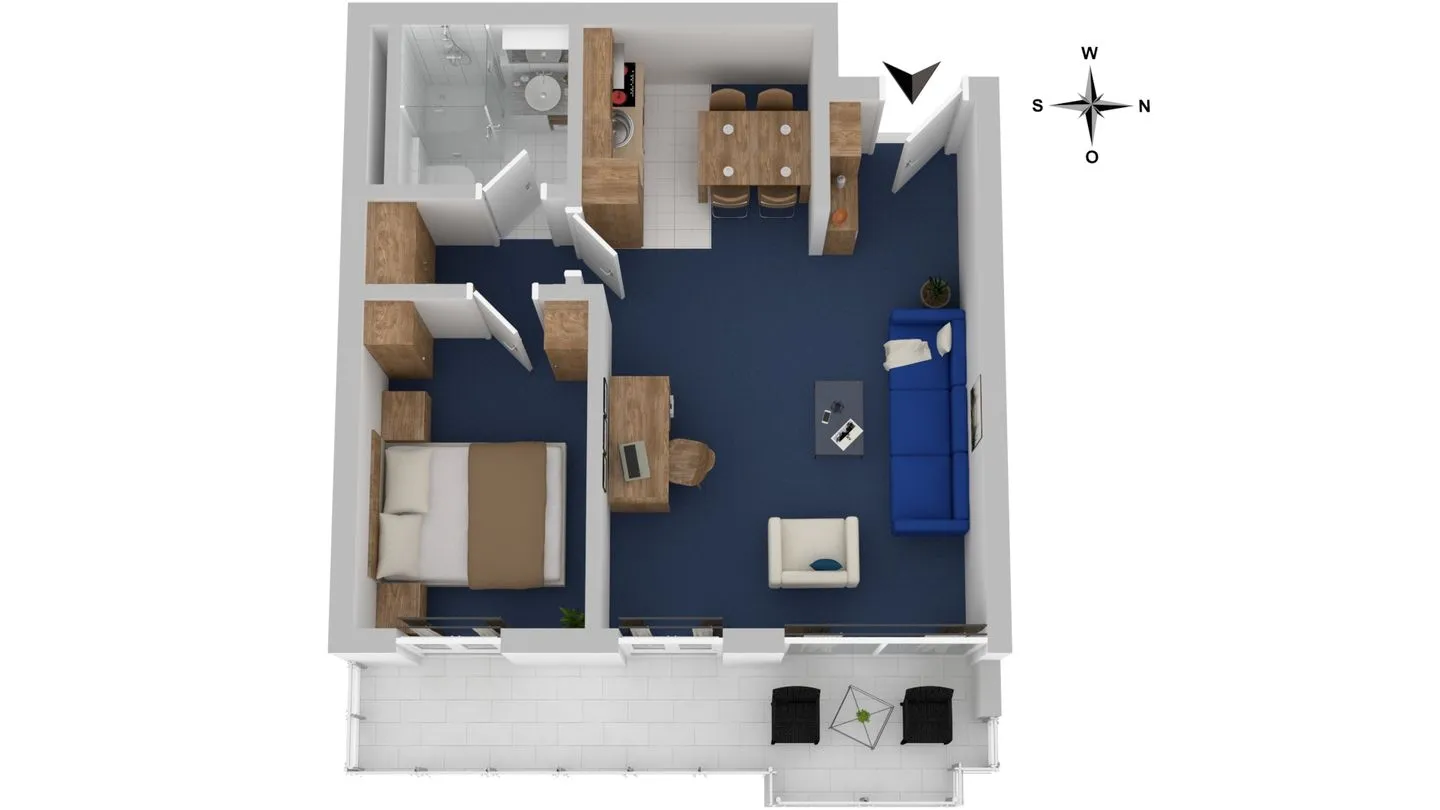 Der helle Wohnbereich lädt mit einem bequemen Schlafsofa, einem Schreibtisch und einem Flachbild-TV zum Verweilen ein. Kostenloses WLAN sorgt dafür, dass Sie auch im Urlaub bestens vernetzt bleiben. Der angrenzende Balkon ist möbliert und ideal für ein Frühstück im Freien oder einen entspannten Abend bei frischer Ostseeluft.